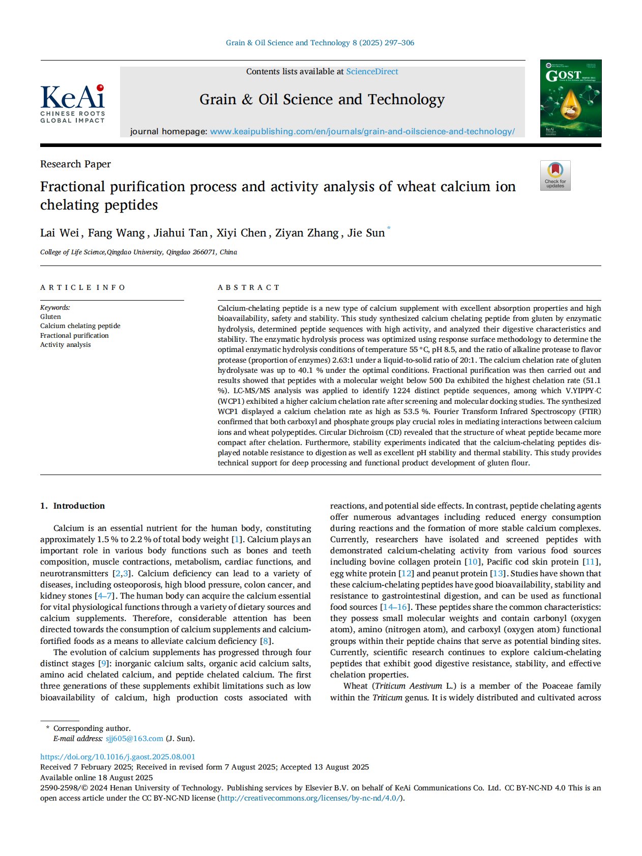 Fractional purification process and activity analysis of wheat calcium ion chelating peptides.pdf