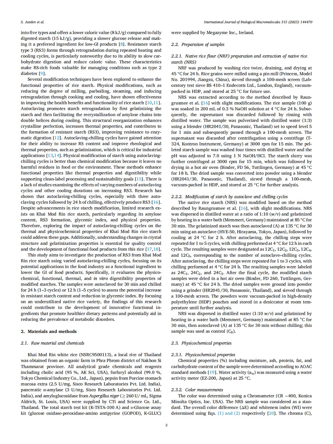 Improving the techno-functional properties and glycemic index of Khai Mod Rin rice starch through autoclaving–chilling cycles
