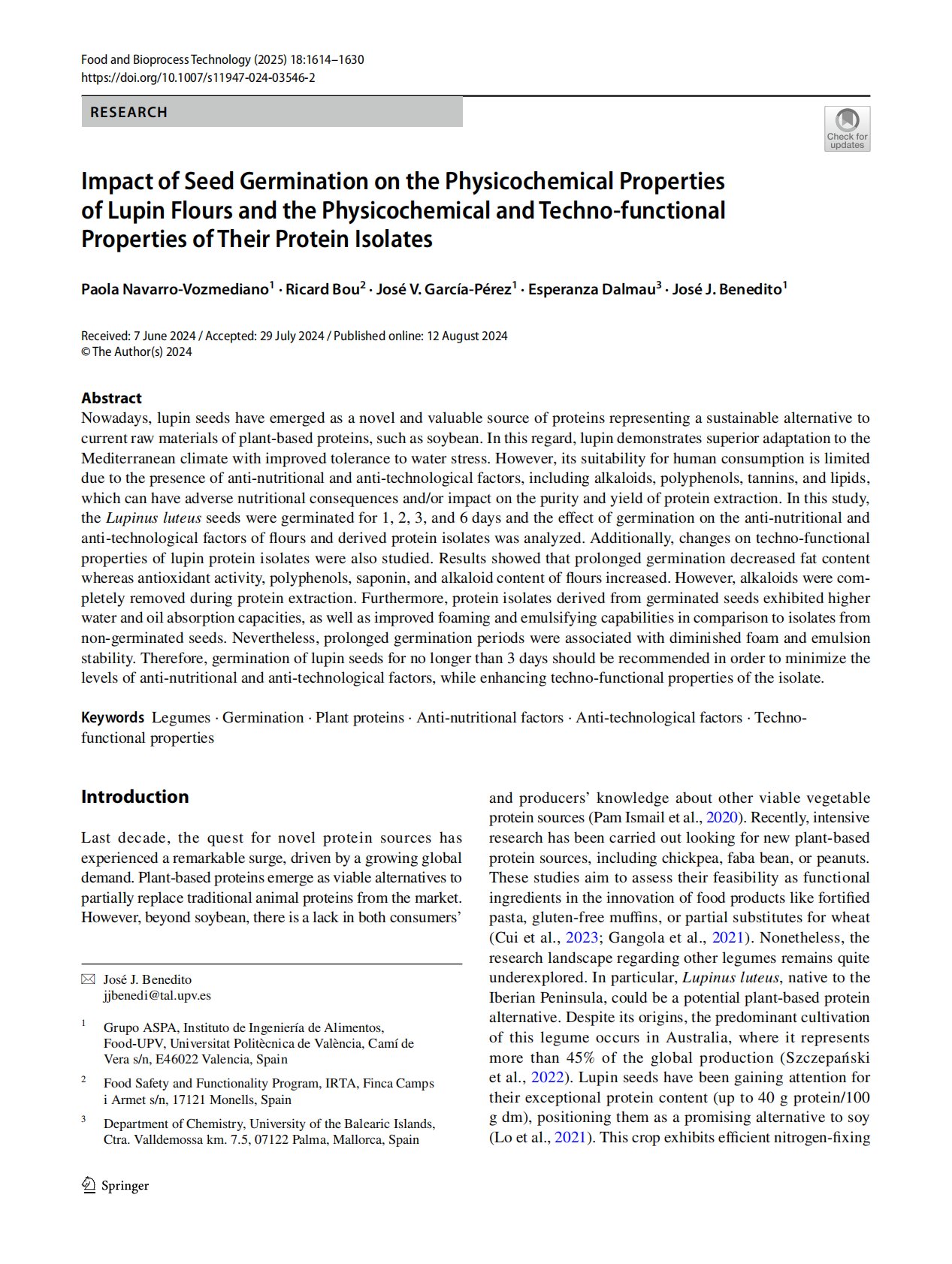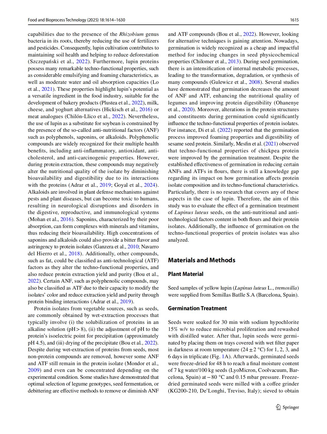 Impact of Seed Germination on the Physicochemical Properties of Lupin Flours and the Physicochemical and Techno-functional Properties of Their Protein Isolates