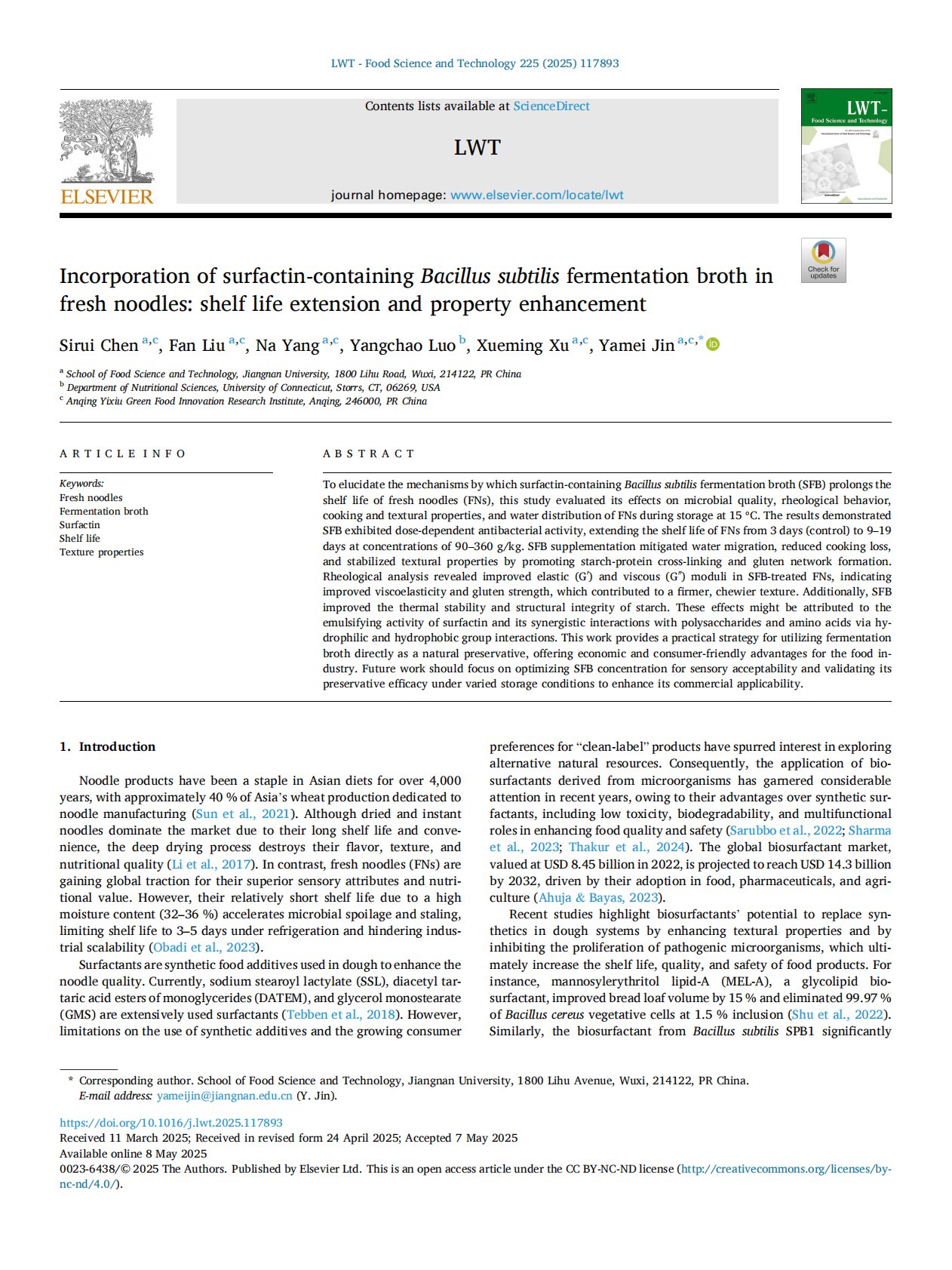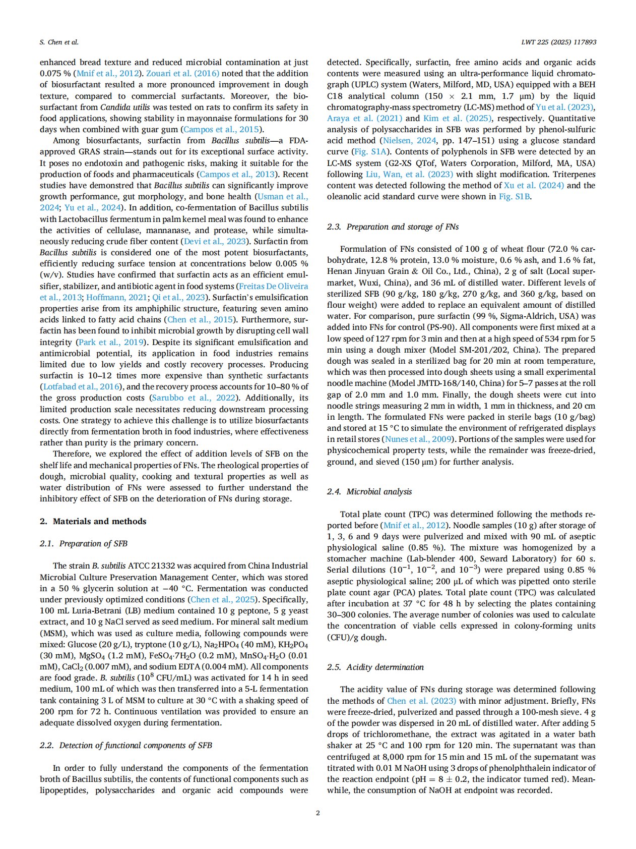 Incorporation of surfactin-containing Bacillus subtilis fermentation broth in fresh noodles: shelf life extension and property enhancement