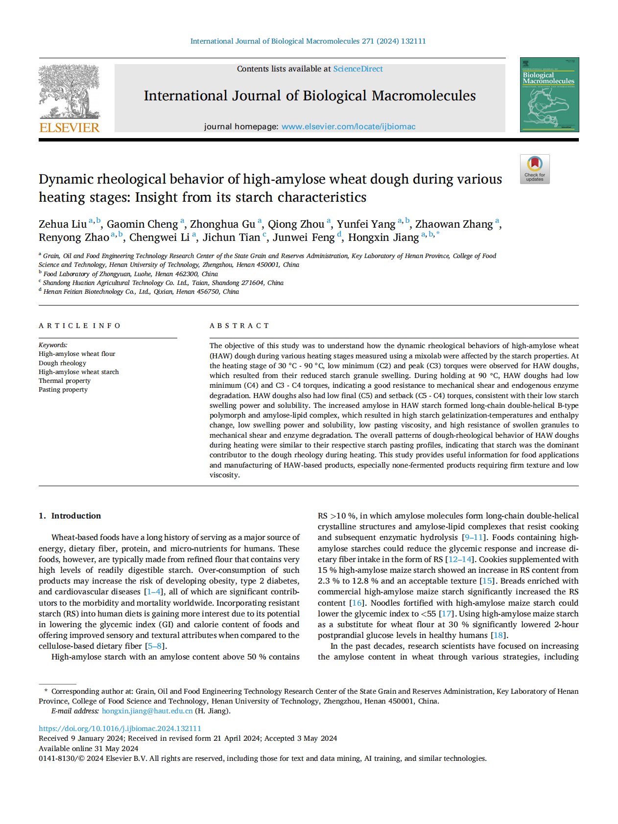 Dynamic rheological behavior of high-amylose wheat dough during various heating stages: Insight from its starch characteristics