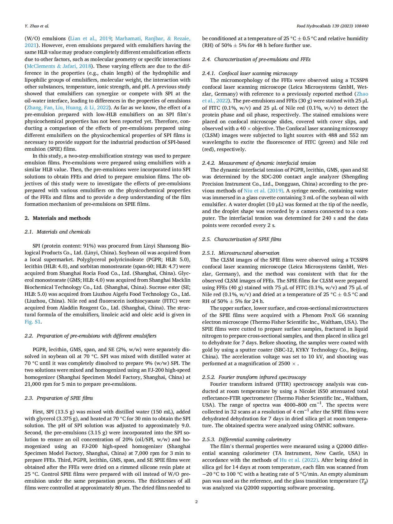 Effect of W/O pre-emulsion prepared with different emulsifiers on the physicochemical properties of soy protein isolate-based emulsion films