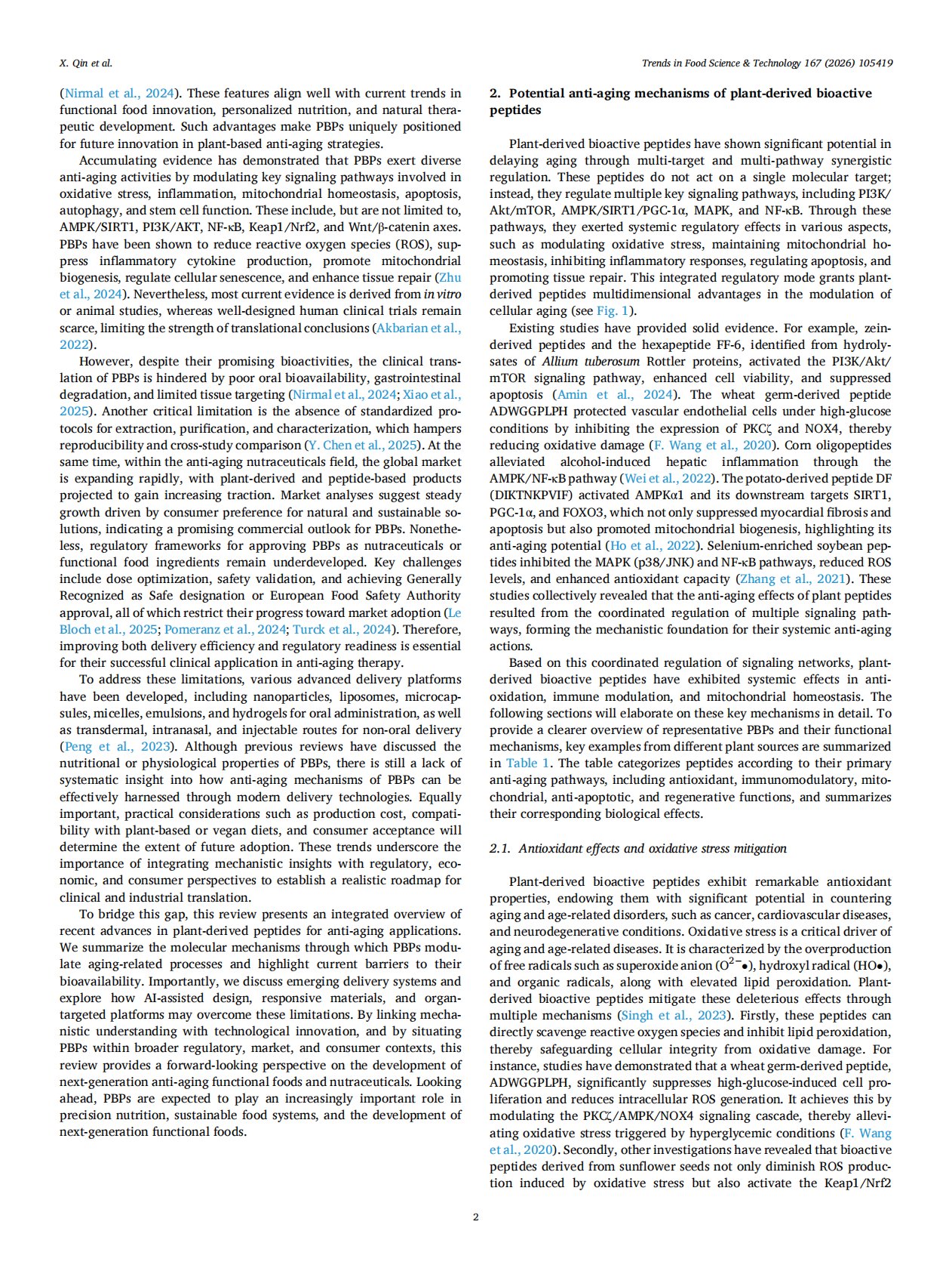 标题:Plant-derived bioactive peptides in anti-aging applications: From molecular mechanisms to advanced delivery platforms