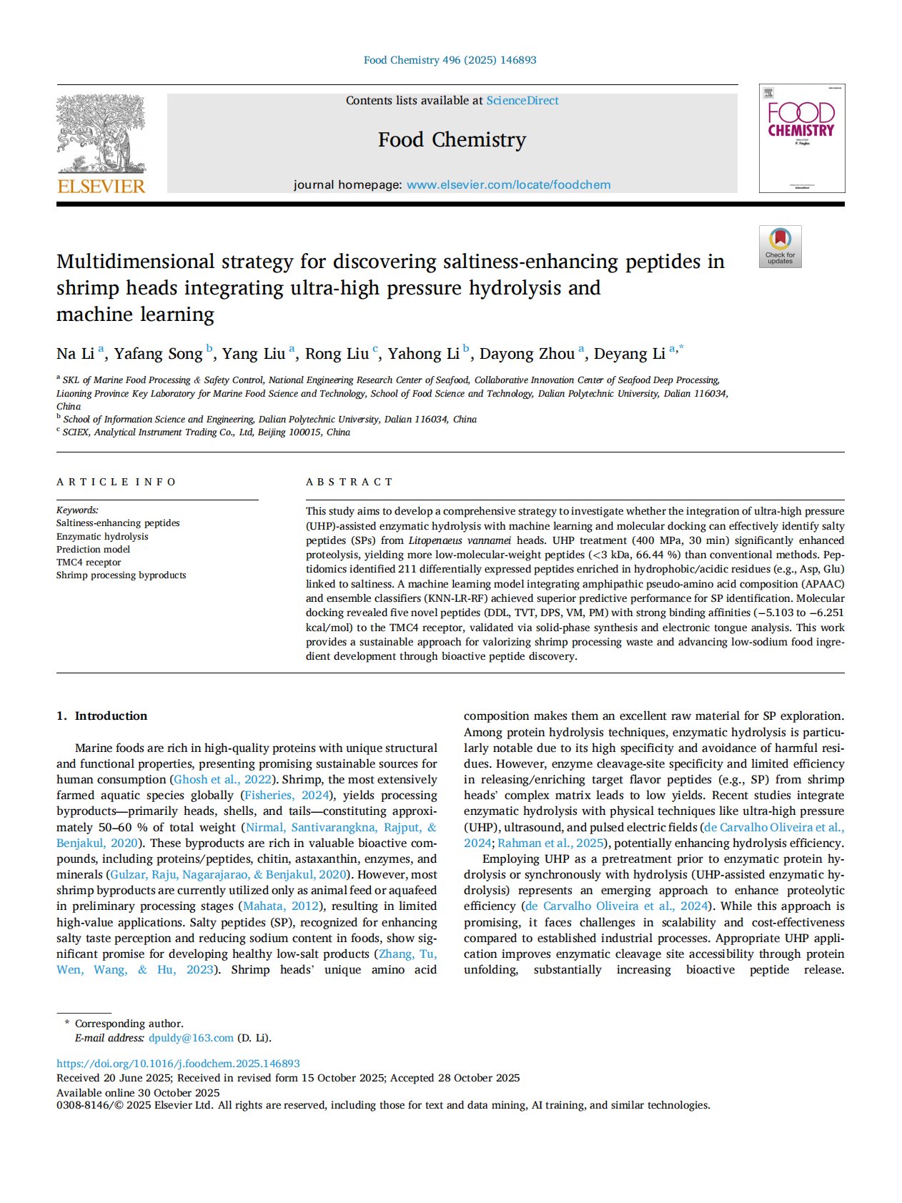 Multidimensional strategy for discovering saltiness-enhancing peptides in shrimp heads integrating ultra-high pressure hydrolysis and machine learning