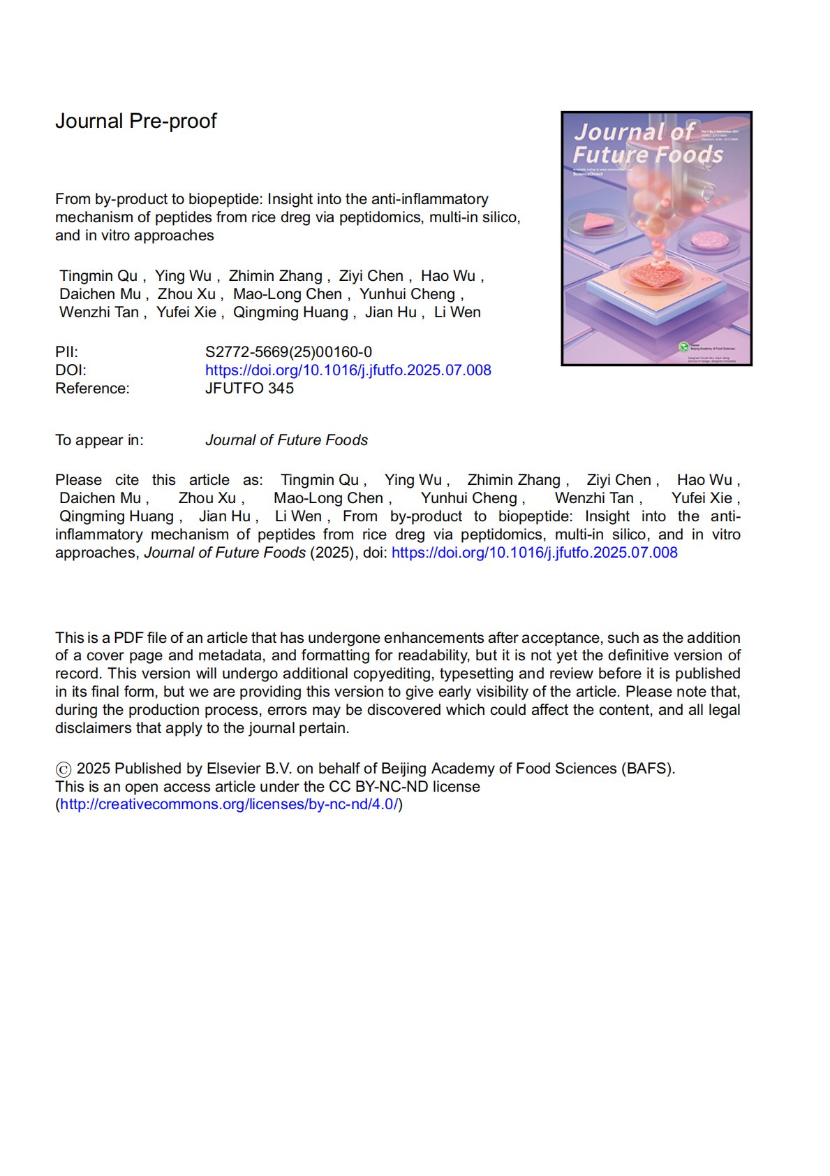 From by-product to biopeptide: Insight into the anti-inflammatory mechanism of peptides from rice dreg via peptidomics, multi-in silico, and in vitro approaches