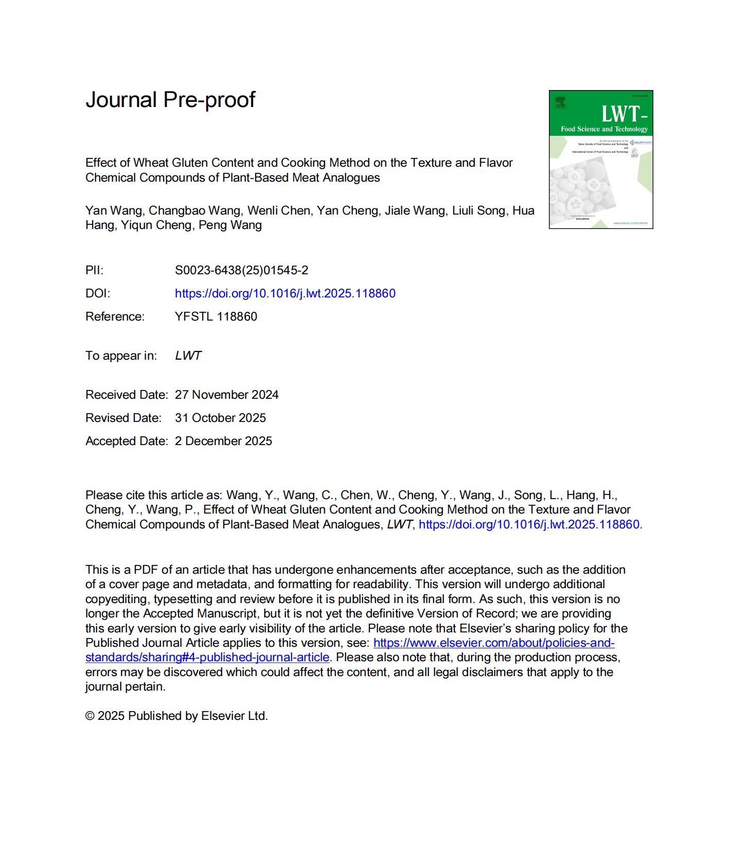 Effect of Wheat Gluten Content and Cooking Method on the Texture and Flavor Chemical Compounds of Plant-Based Meat Analogues