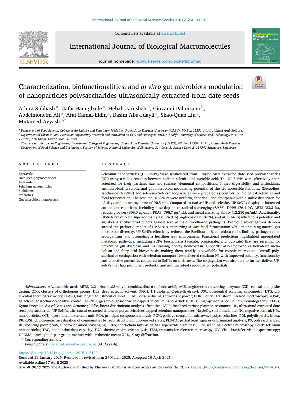 Characterization, biofunctionalities, and in vitro gut microbiota modulation of nanoparticles polysaccharides ultrasonically extracted from date seeds