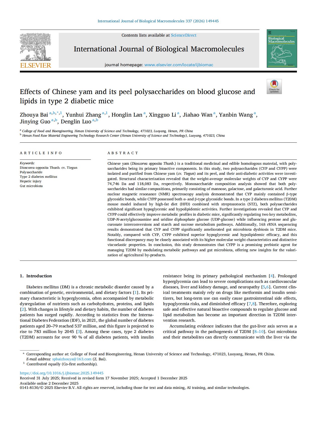 Effects of Chinese yam and its peel polysaccharides on blood glucose and lipids in type 2 diabetic mice.pdf