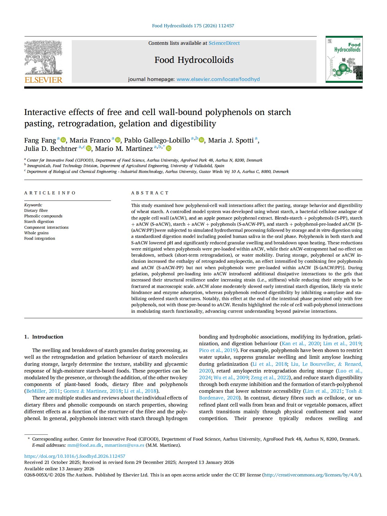 Interactive effects of free and cell wall-bound polyphenols on starch pasting, retrogradation, gelation and digestibility