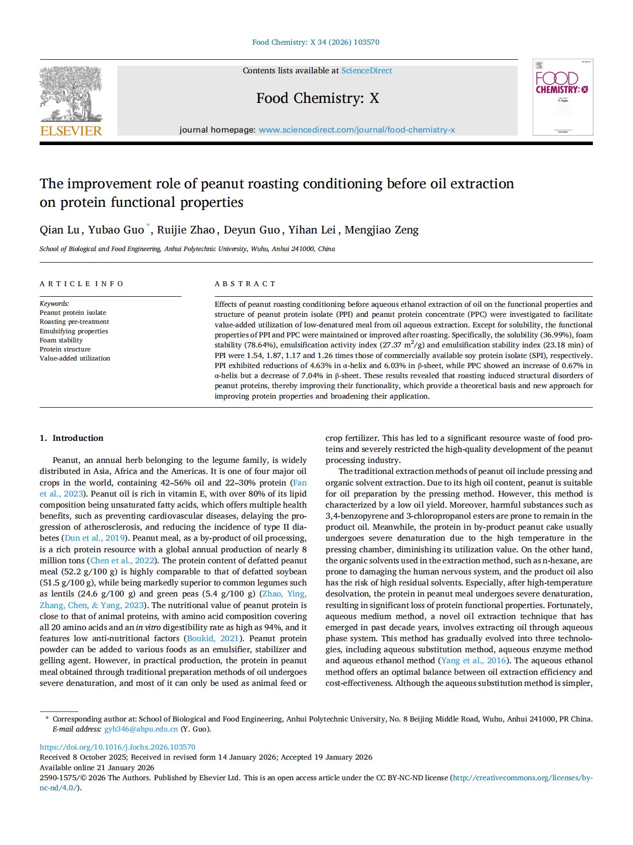 The improvement role of peanut roasting conditioning before oil extraction on protein functional properties