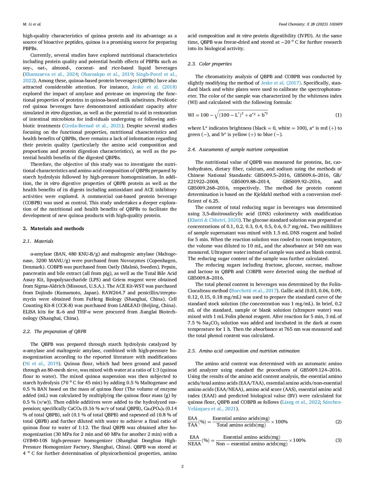 Evaluation of the nutritional, in vitro protein digestive and bioactive characteristics of a quinoa-based protein beverage