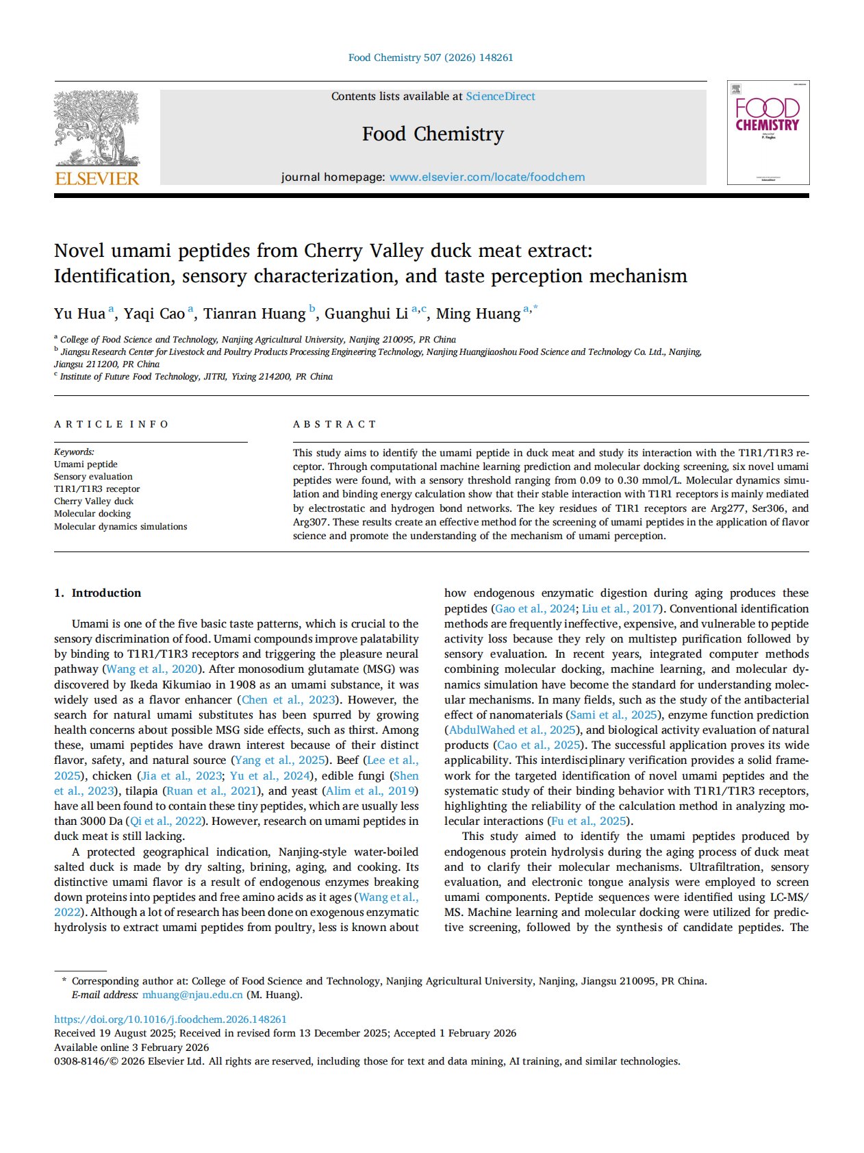 Novel umami peptides from Cherry Valley duck meat extract: Identification, sensory characterization, and taste perception mechanism